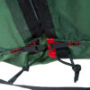 Все узлы, испытывающие повышенные нагрузки, усилены высокопрочной тканью. Край внешнего тента и край юбки обшиты прочной стропой, что значительно уменьшает риск порвать тент ветками и камнями. Стропа красного цвета, поэтому крайпалатки виден даже в сумерках и густой траве. Юбка по периметру палатки защищает от потоков холодного воздуха, дождя и насекомых.